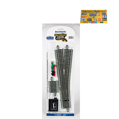 Este desvío de control remoto Bachmann HO Scale EZ Track No. 5 es más largo que el desvío básico y ofrece una ruta divergente más suave, ideal para locomotoras y vagones más largos. Ya sea para su primer juego de trenes o para diseños más avanzados, Bachmann HO Scale EZ Track facilita la configuración. Cada sección combina vía y plataforma en una sola pieza, con ensamblaje a presión y cableado enchufable para brindar diversión ferroviaria instantánea. Una función de bloqueo oculta mantiene las secciones juntas de forma segura hasta que esté listo para desarmarlas. Fácil de instalar en cualquier superficie, incluidos pisos y alfombras, no se necesitan herramientas especiales, clavos o tablas. El riel de níquel-plata de baja oxidación es fácil de mantener limpio y libre de corrosión con un uso normal en interiores y la plataforma gris es similar en apariencia a la real. La vía de aleación de acero de plataforma negra moldeada EZ Track que se suministra con los juegos de trenes es totalmente compatible con la vía de níquel-plata de plataforma gris. Es un gran sistema de vías para exhibiciones navideñas o diseños permanentes.